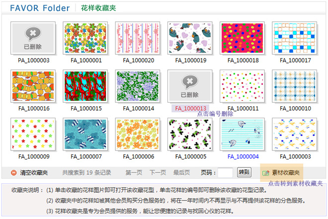 2.點擊收藏花型的編號可刪除該收藏花型的記錄;