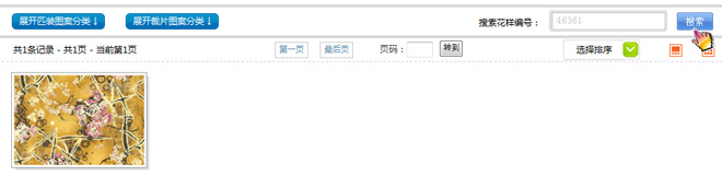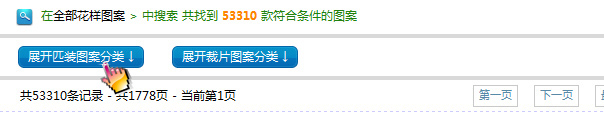 二、進(jìn)入花樣搜索功能頁面,點(diǎn)擊‘展開匹裝圖案分類’或‘展開裁片圖案分類’