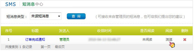 第二步,進入短消息中心后可以查詢您收到的短消息及以前的短消息記錄。