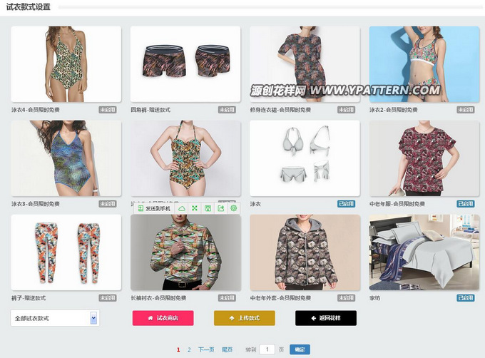 為了體現(xiàn)不同的面料花型、印花圖案在服裝、家紡、圍巾、箱包、泳裝、床品、鞋子的真實(shí)試衣感覺(jué),我們都希望有一款軟件可以模擬花型在產(chǎn)品上的真實(shí)感覺(jué),以下為你介紹的,就是這樣一款試衣套款工具,可以媲美任何的試衣軟件。有多套模版,針對(duì)不同的客戶(hù)進(jìn)行試衣。而且,最重要的是:免費(fèi)!免費(fèi)。∶赓M(fèi)。。。ㄖ匾氖虑檎f(shuō)3遍。)此文章主要介紹試衣間的在線(xiàn)試衣、套款功能。如需了解在線(xiàn)配色功能,在瀏覽此連接文章。http://www.ypattern.com/viewarticle.aspx?id=76