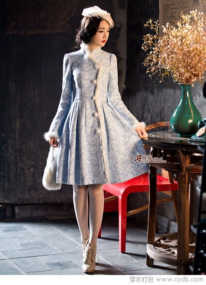 玫瑰盛開是很多女孩子都喜歡的浪漫唯美,毛呢并不是最好的印花材料,但它卻讓玫瑰印花秀出了新姿態(tài)。裙式外套,兔毛滾邊,質(zhì)感高大上,有一種溫婉淋漓盡致,印花奢華而低調(diào)。