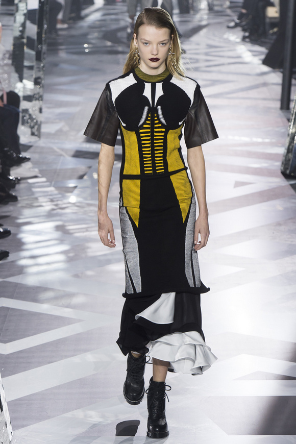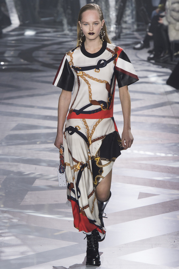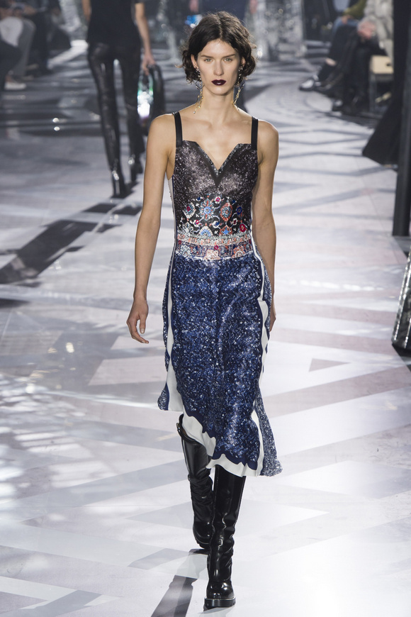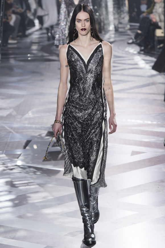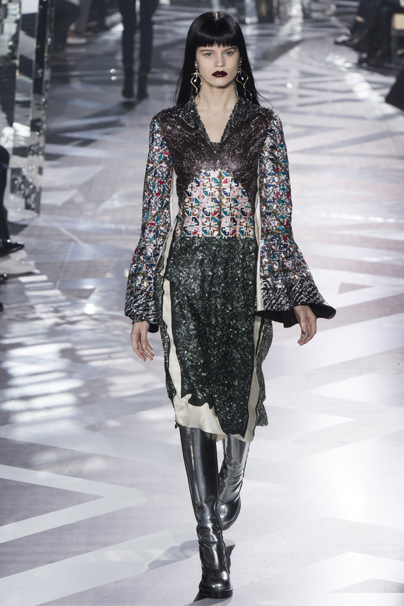 旅行,一直都是Louis Vuitton永恒的主題。鏡子所制成的圓柱,使用水泥以及破碎的鏡片,是對(duì)于Justin Morinrsquo;s ldquo;融化之骨ldquo;的重新演繹,本季,Nicolas Ghesquiegrave;re用ldquo;未來(lái)考古學(xué)rdquo;概念,發(fā)現(xiàn)了未來(lái)的考古之旅。秀場(chǎng)布置得如同在水底發(fā)現(xiàn)的亞特蘭提斯城般,失落的未來(lái)城市。這是一個(gè)由破碎的鏡子所組成的城市,半頹半傾,但破碎的廢墟中充斥著高科技的未來(lái)。