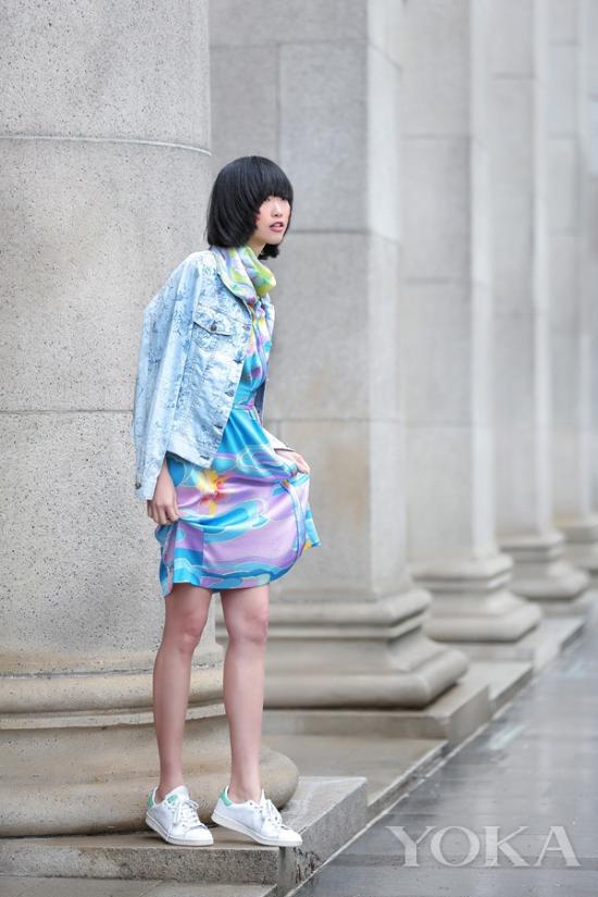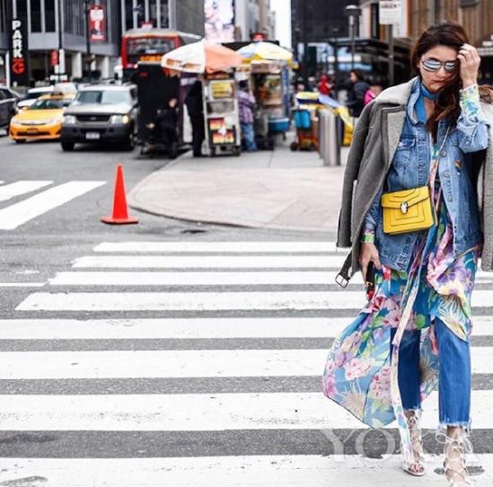 時(shí)尚達(dá)人們演繹出今夏印花與丹寧搭配的多種可能性,總有一款適合你!模特伍靜麗選擇Leonard潑彩印花連身裙,搭配一件中性丹寧外套,在視覺上平衡了印花的甜美,使得整體造型即散發(fā)出柔美氣息又率性十足。博主Maryna Kovaltchuk提供了另一種時(shí)髦個(gè)性的穿著方式,印花襯衫和牛仔喇叭褲的組合,充滿80年代的復(fù)古腔調(diào)。