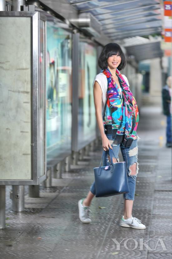 絲巾的妙用:局部印花點(diǎn)亮夏日造型