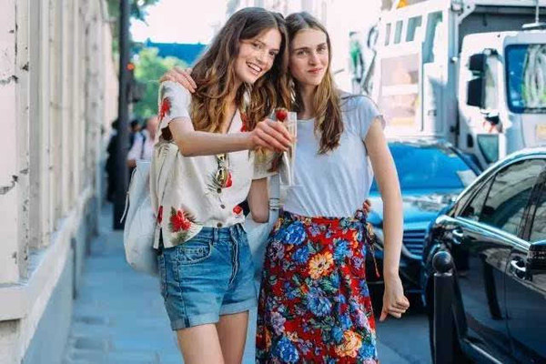 同理牛仔上衣也可以和各種印花裙搭配,少女感十足。