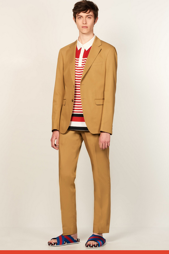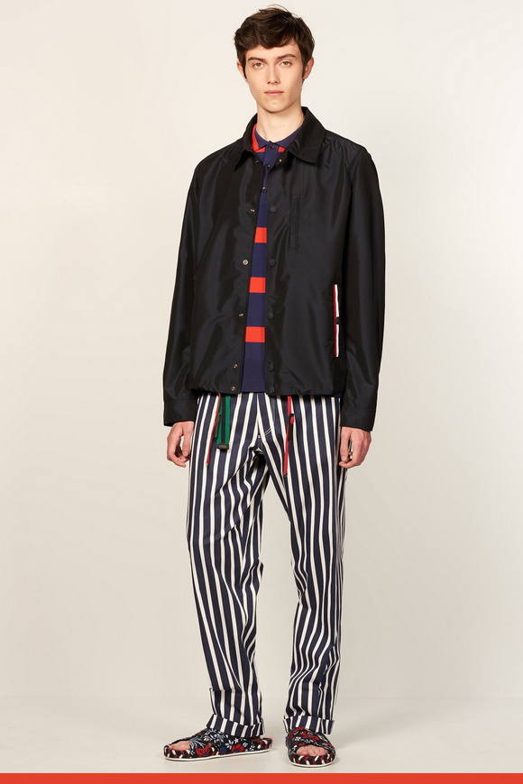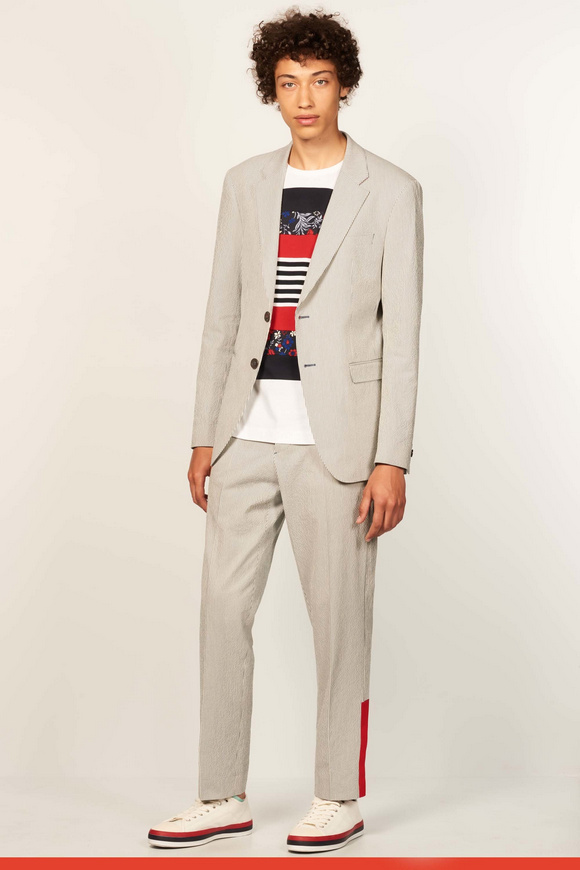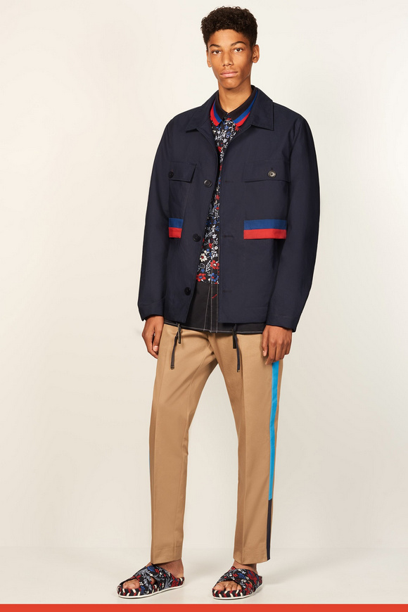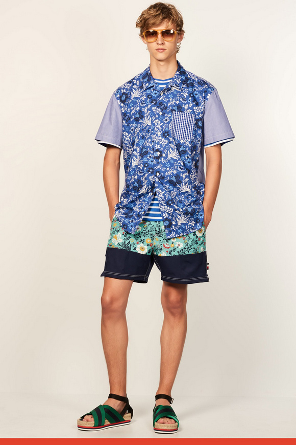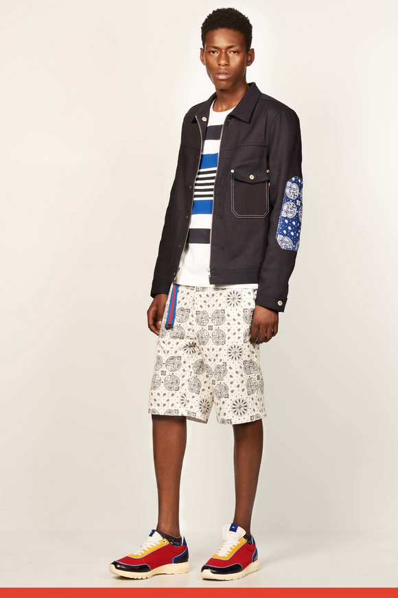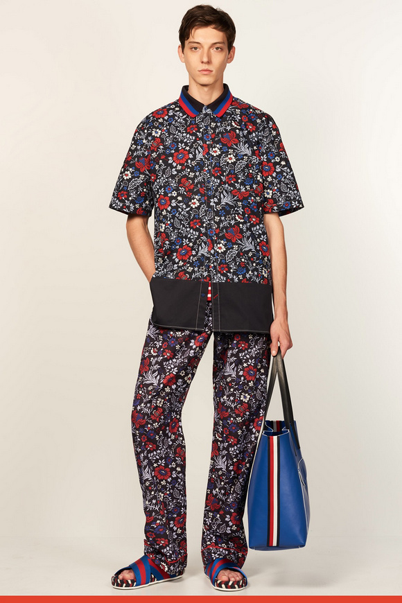 2017年春季系列,是對(duì)上世紀(jì)七十年代ldquo;適合運(yùn)動(dòng)穿著服飾rdquo;風(fēng)潮與ldquo;常春藤聯(lián)盟rdquo;風(fēng)格的回眸致敬,并將版型輪廓作了再造,剪裁比例作了更新,且在細(xì)節(jié)上彰顯創(chuàng)意的可能性。印花是本季貫穿始終的元素。碎花、扎染印花、線形圖案給予本季意想不到的新鮮視覺呈現(xiàn),還有通過拼縫來展現(xiàn)輪廓,并添加了圖案拉鏈元素。套裝與睡衣既自然舒適又符合裁剪審美,且顛覆傳統(tǒng)佐以熱帶植物元素及短褲來作混搭。外套通過走運(yùn)動(dòng)范兒倍顯休閑,譬如套頭衫與梭形外套。破邊牛仔衣則通過短式裁剪來顯得與眾不同,以此來對(duì)工裝致敬。針織衫看似常規(guī),但在制作工藝上有極大創(chuàng)新。襯衣,卡其褲,這些都是Tommy Hilfiger風(fēng)格形成的根基,通過削減超大面料,針織polo衫領(lǐng)口或者側(cè)條紋,以展現(xiàn)當(dāng)代簡(jiǎn)約剪裁與成衣結(jié)構(gòu)。每款成衣都佐以配飾,包括漁夫帽,皮革手提袋,讓人心動(dòng)的新型膠底鞋,以及繩索切邊涼鞋