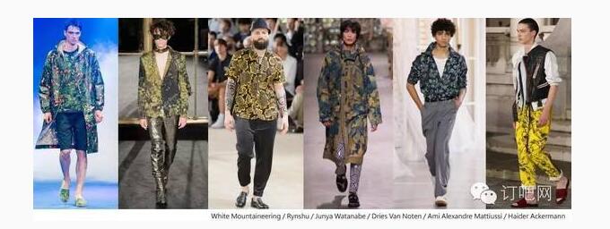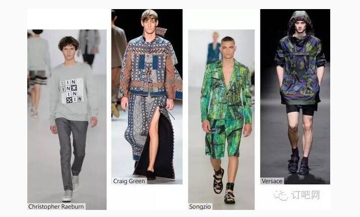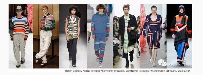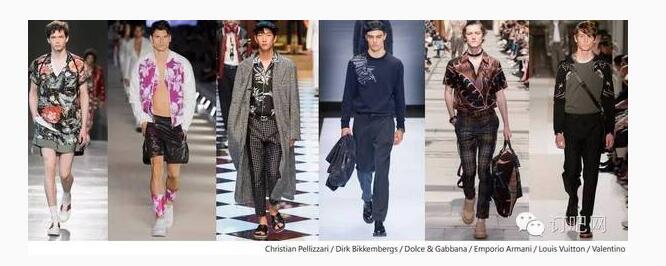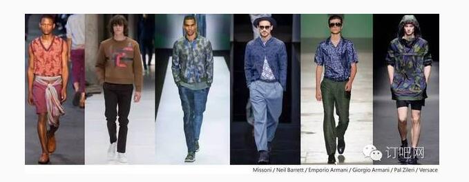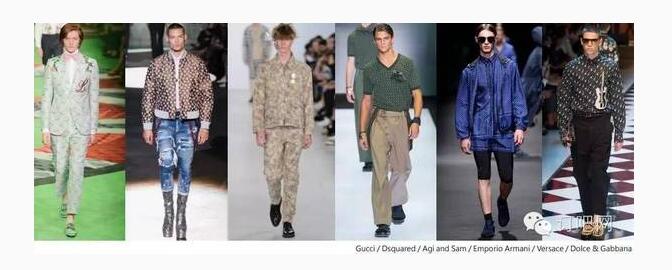 綜觀 2017 春夏巴黎、米蘭、倫敦男裝周,未來(lái)男裝在印花圖案的呈現(xiàn)上將混合 70 年代、80 年代和 90 年代元素,變化出一種新時(shí)代的改良風(fēng)格。整體來(lái)說(shuō),沒(méi)有明確的季節(jié)性,多采中性的暗色調(diào)色板。叛逆非主流的醒目圖像為服裝營(yíng)造出硬派的都會(huì)街頭風(fēng)格。經(jīng)典的條紋延續(xù)至明年春夏,以優(yōu)雅的休閑風(fēng)或時(shí)尚的條紋混搭,呈現(xiàn)不同的條紋風(fēng)情。中東風(fēng)格的精美花紋是現(xiàn)代花美男的優(yōu)選,同時(shí)符合環(huán)球旅行者的出走潮流。此外,不規(guī)律的重復(fù)碎花、叢林迷彩、稀有動(dòng)植物、幾何圖案,也仍保有重要地位。