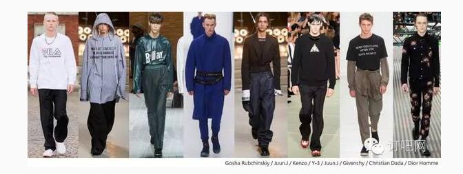 此外,Christopher Shannon類似送貨員的輕松穿著,Kenzo的街頭連帽文字TEE,或是Gosha Rubchinskiy利用知名品牌標(biāo)志推出 90 年代的復(fù)古造型,也都是可以嘗試的作法。
