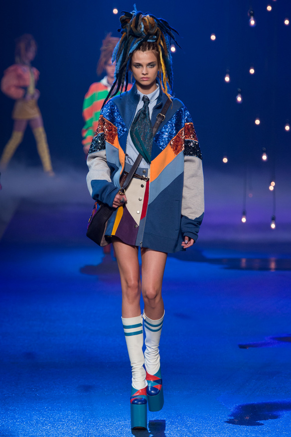 Marc Jacobs 馬克middot;雅可布 這一季在紐約的時(shí)裝里,設(shè)計(jì)師選擇了陽(yáng)光明媚的亮色和花朵。小碎花,毛皮領(lǐng),亮片,引人注目,貫穿整個(gè)發(fā)布會(huì)。