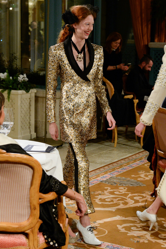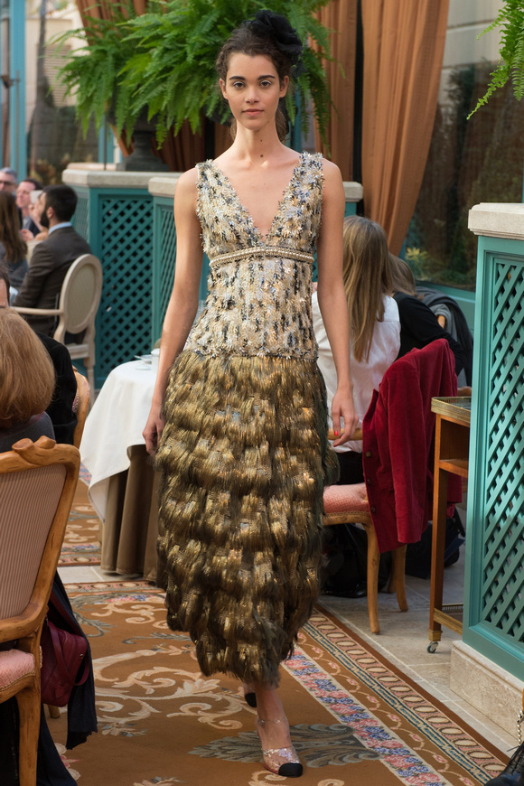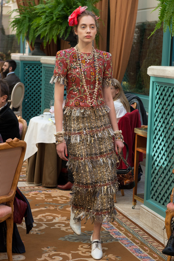 金燦燦的閃片,甚至連羽毛都灑了金粉,Chanel的首席設(shè)計師卡爾middot;拉格斐,將20,30年代的設(shè)計元素都揉合在一起,他說,這就是現(xiàn)代的東西。