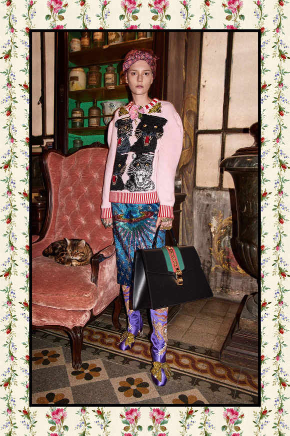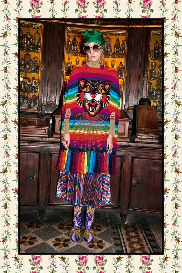 Gucci的設(shè)計(jì)師Alessandro Michele是一個(gè)偉大的會(huì)講故事的人。他的藏品似乎都在講述一個(gè)個(gè)奇異的故事,各種各樣的兔子,老虎,貓,龍是一個(gè)奇妙的,誘人的幻想世界。