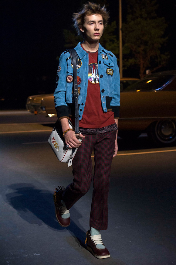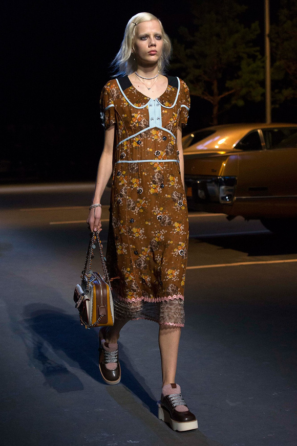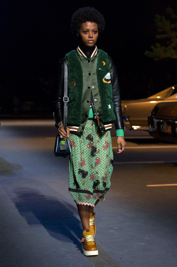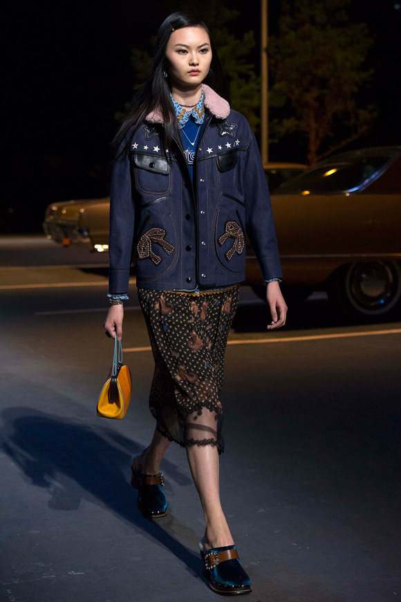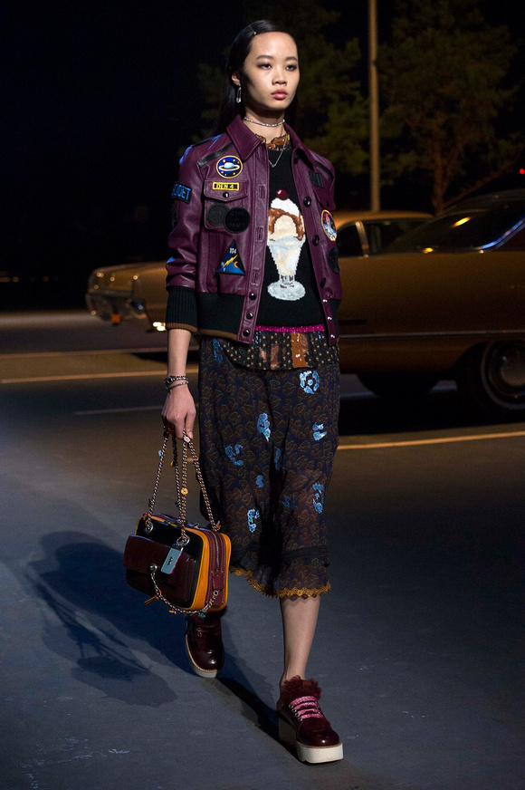誰也不會想到,在Stuart Vevers來到Coach當設計師前,我們要在一個寒冷的夜晚聚集在94碼頭看時裝發(fā)布會。 作為一個英國人,Vevers對美國有很深的喜愛和好奇。他的設計,每一次都找到了一種新的方法。一個季節(jié)是牛仔靴-穿著草原女孩,下一個季節(jié)是埃爾維斯的愛騎自行車的寶貝。前秋季是他最折衷混搭。迄今,他統(tǒng)一收集了我們團結和樂觀的想法,反映了真實的的生活。