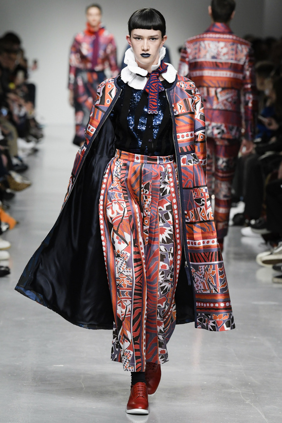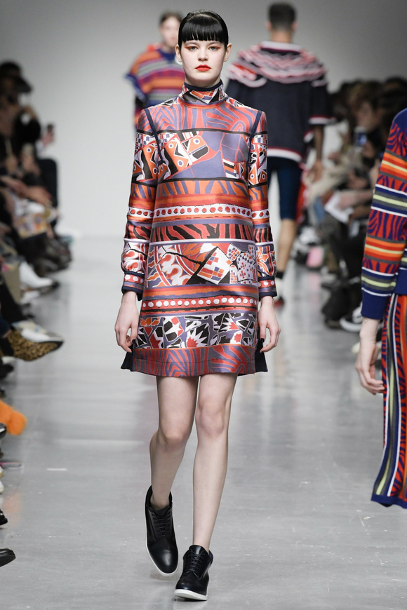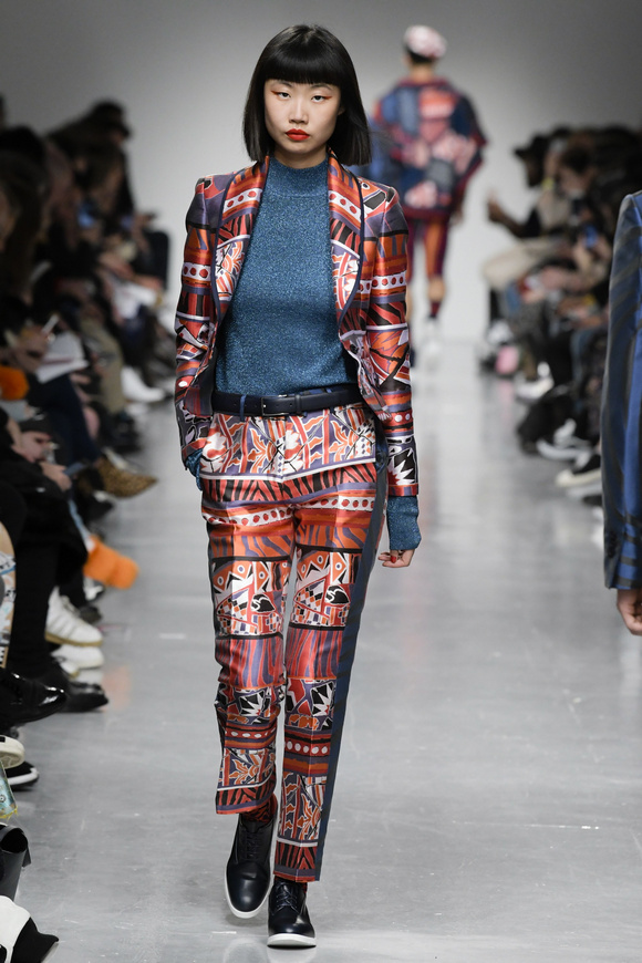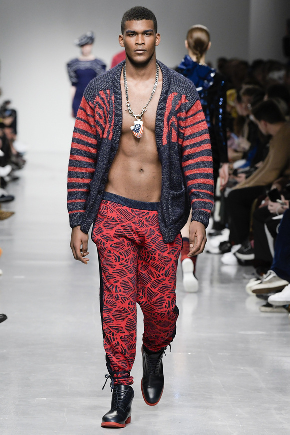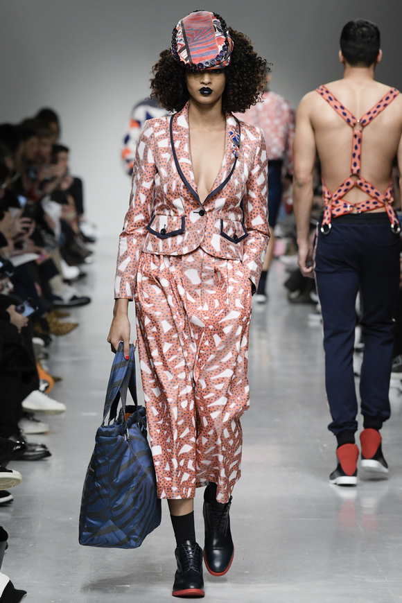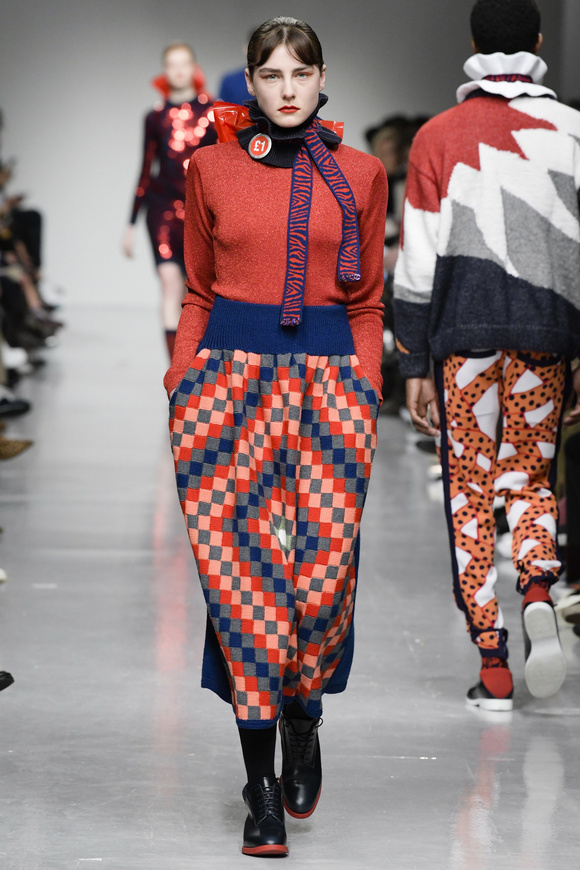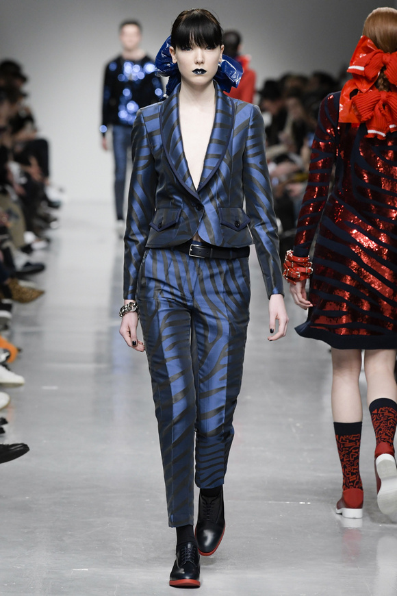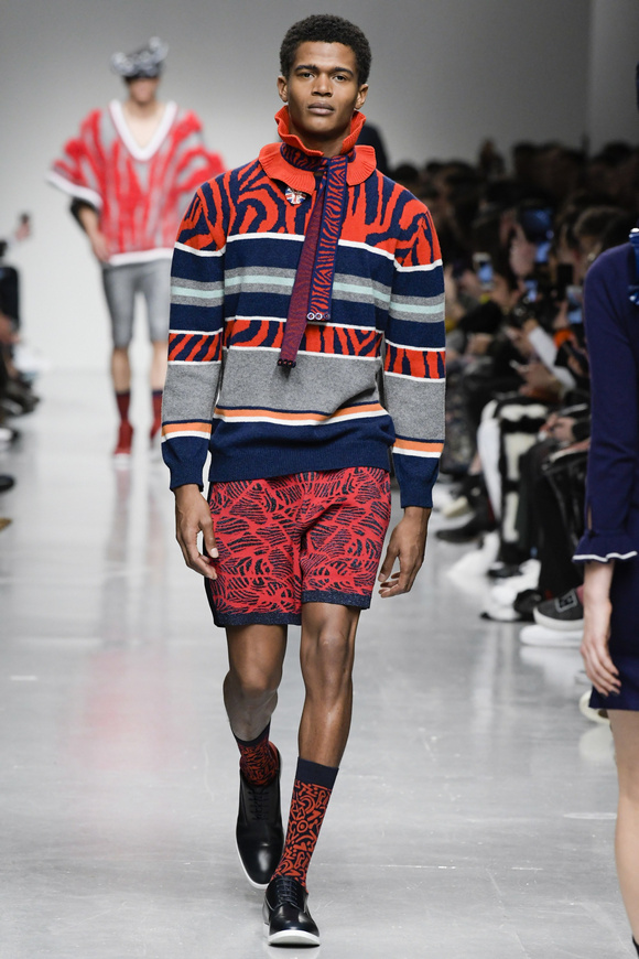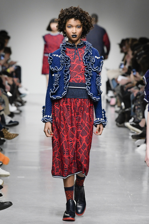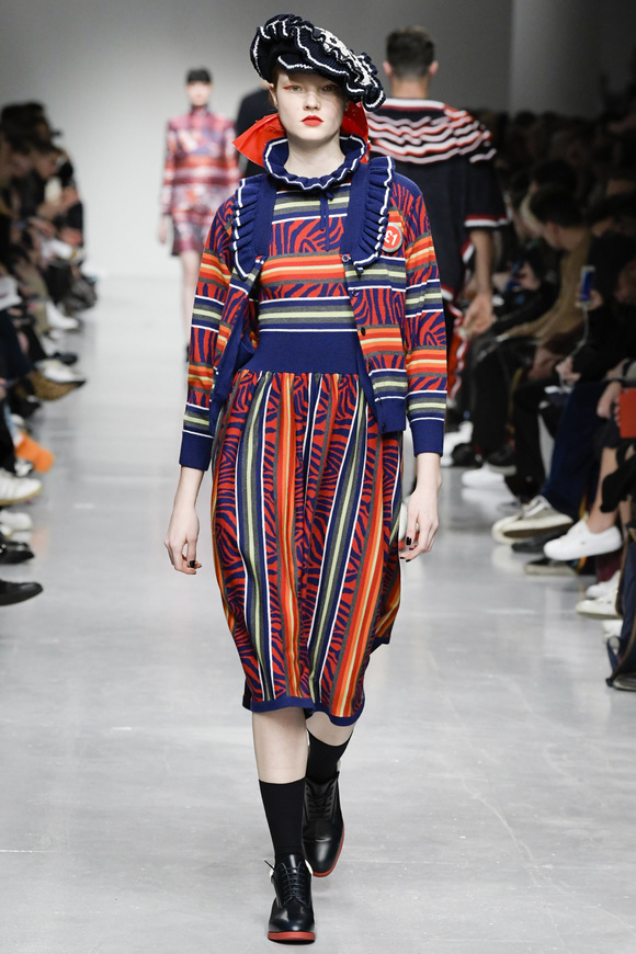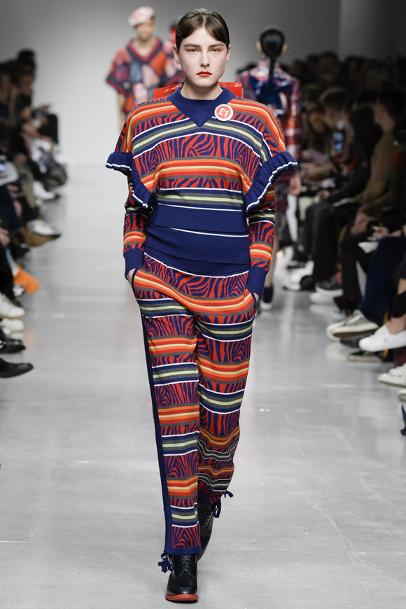 在Judy加入到Sibling后,這個品牌的時裝設計主軸已經被改變了。這一季的服裝,花哨,高調的裝飾,提花,不經修飾的邊緣,還有大量的運用提花。還有亮片毛衣和印有斑馬紋的彈力服裝。所有的靈感都來自與巴薩。