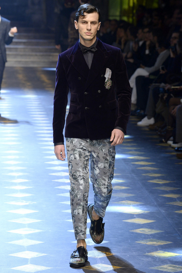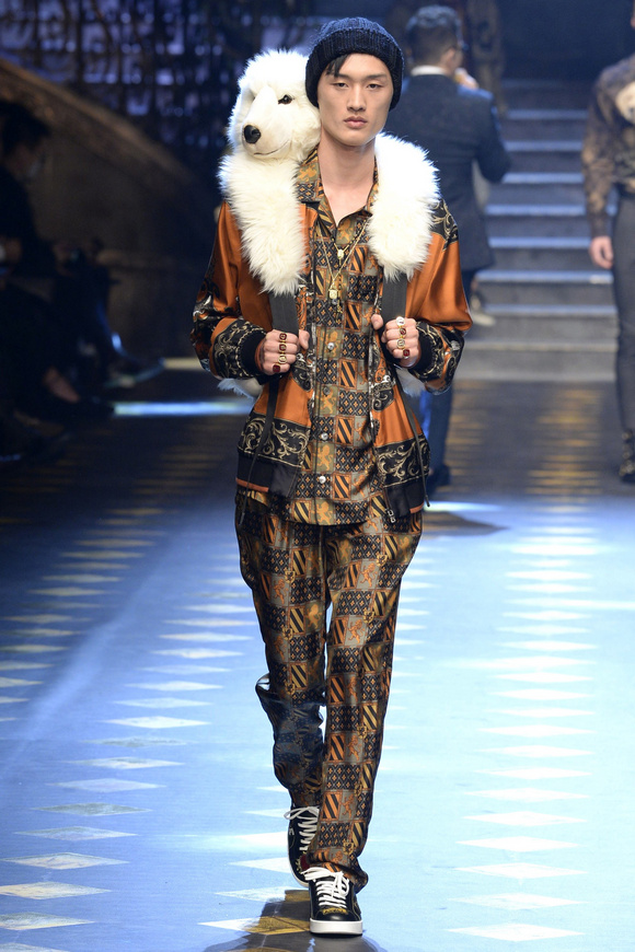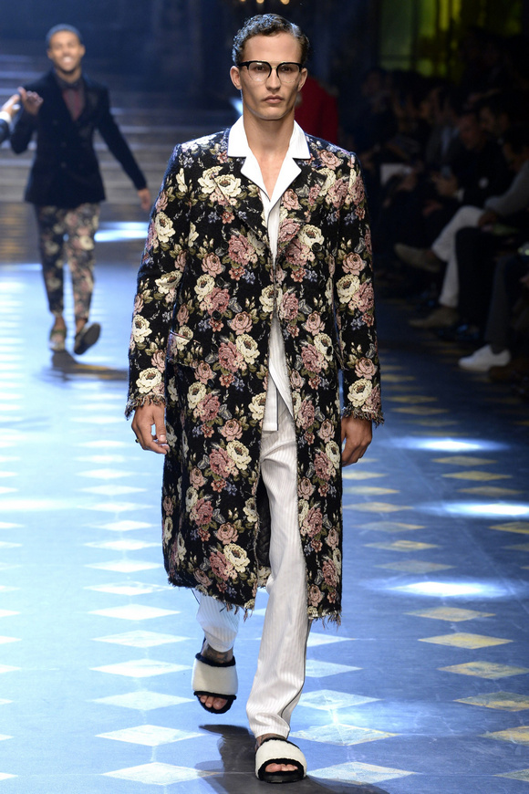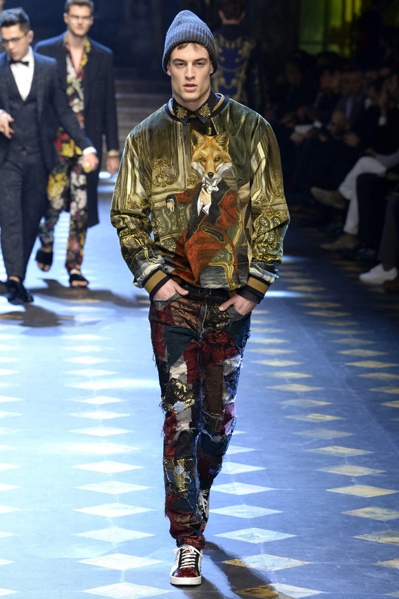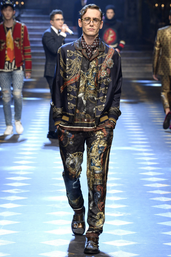 Dolce amp; Gabbana 2017秋季男裝引入了年輕一代在YouTube和Instagram的想法,除了引入年輕點(diǎn)子外,印花貫穿整個(gè)時(shí)裝季。