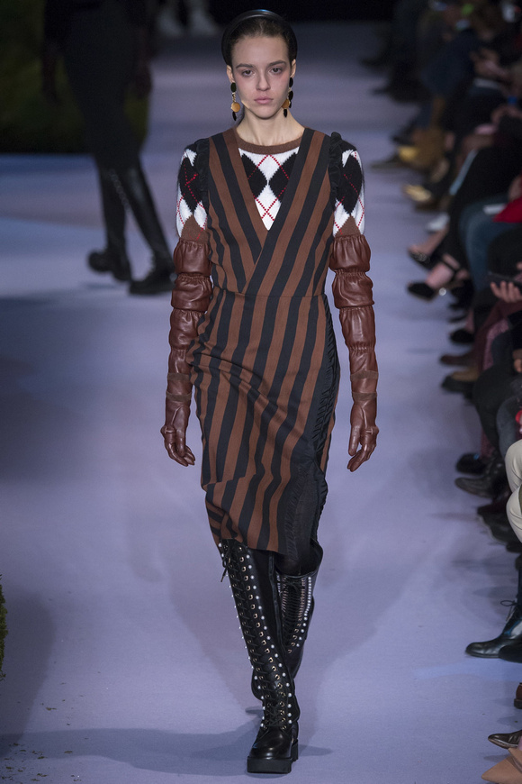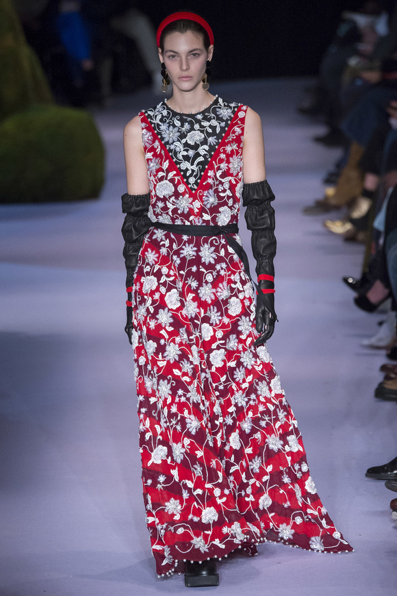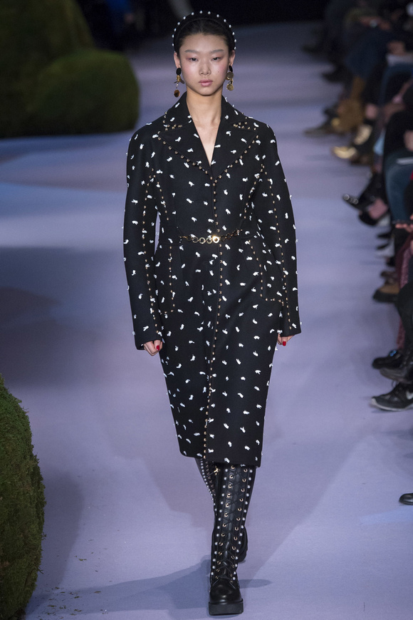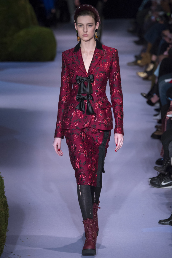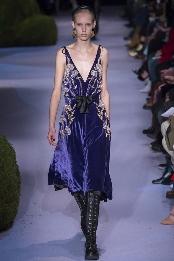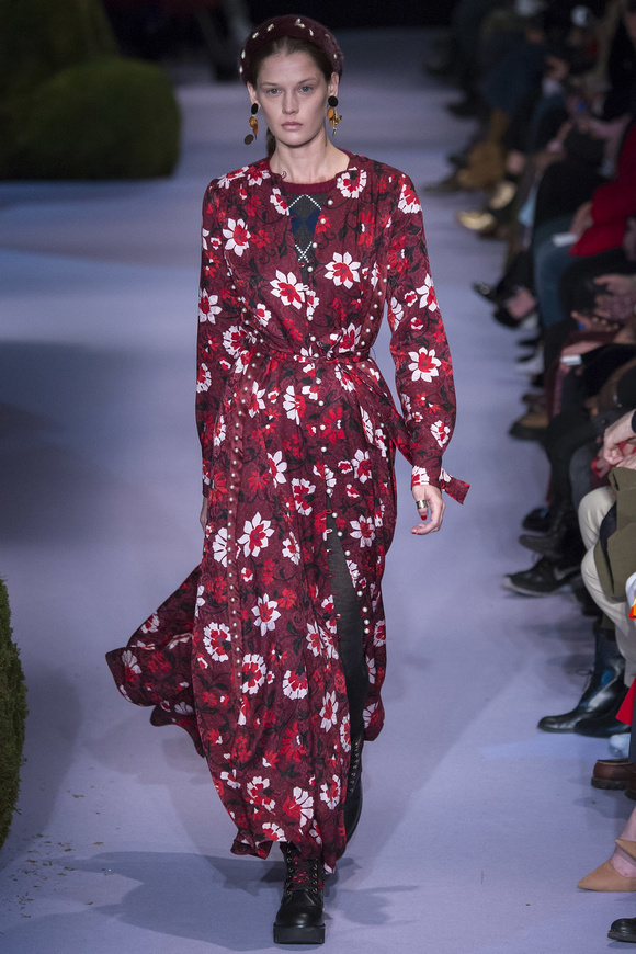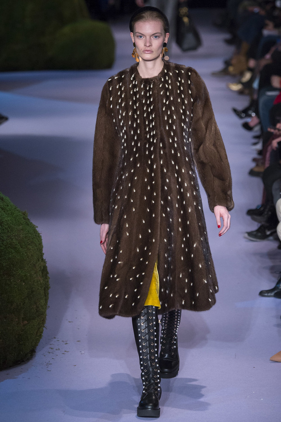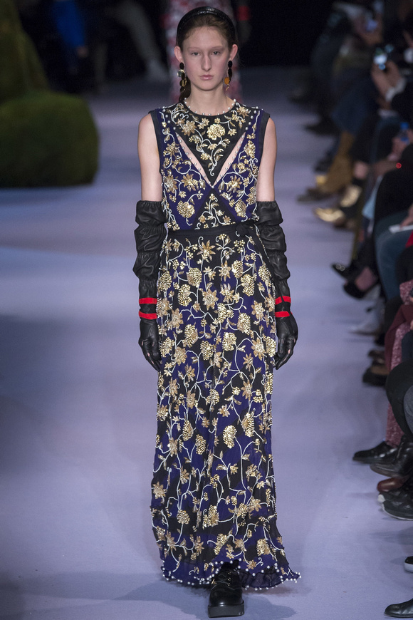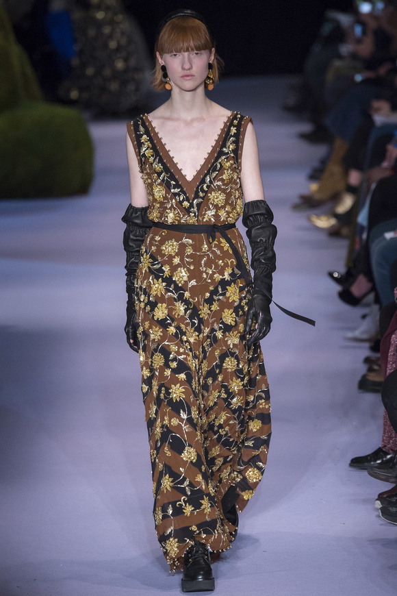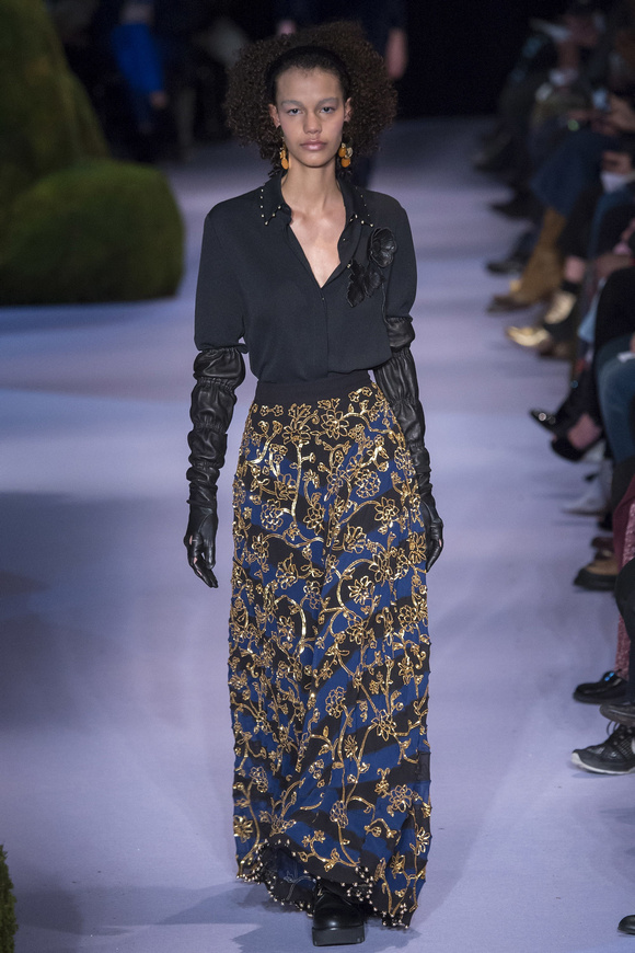 這一季的設(shè)計(jì),流露著濃郁的北方文藝復(fù)興,這個(gè)集合的美被郁郁蔥蔥、同樣豐富的裝飾表現(xiàn)得淋漓盡致,在貂皮大衣縫上的淚滴珍珠,還有更微妙的東西,如電纜針織毛衣和與其搭配的裙子花絲繡。到處都充滿(mǎn)感動(dòng),他的設(shè)計(jì)總是擁抱巧妙的細(xì)節(jié)。