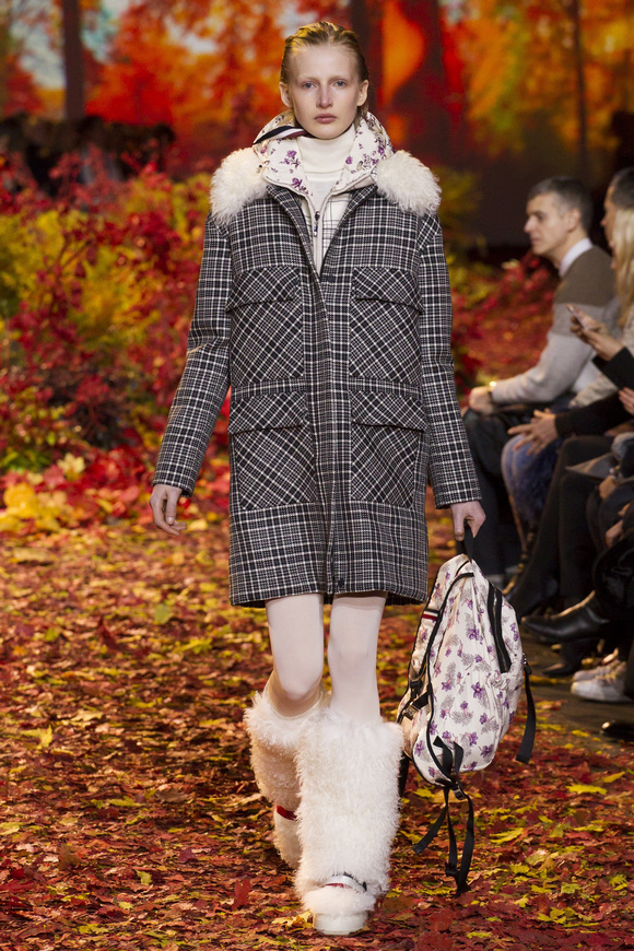 Moncler Gamme Rouge這一季的秀場布置成秋天的樹林,格子夾克、毛絨外套。一個理想的視覺,看到有歐洲的痕跡,也有加拿大的風格。