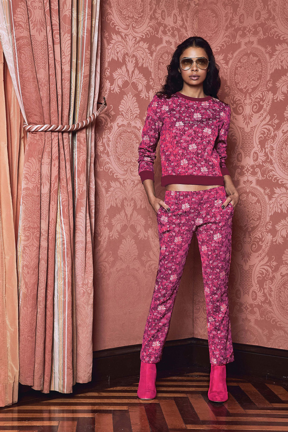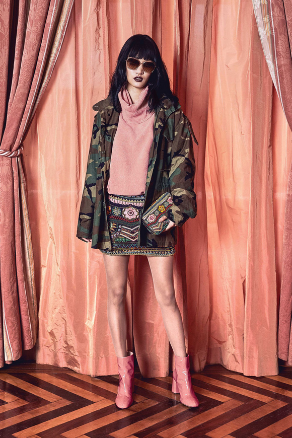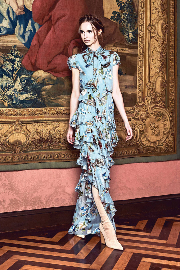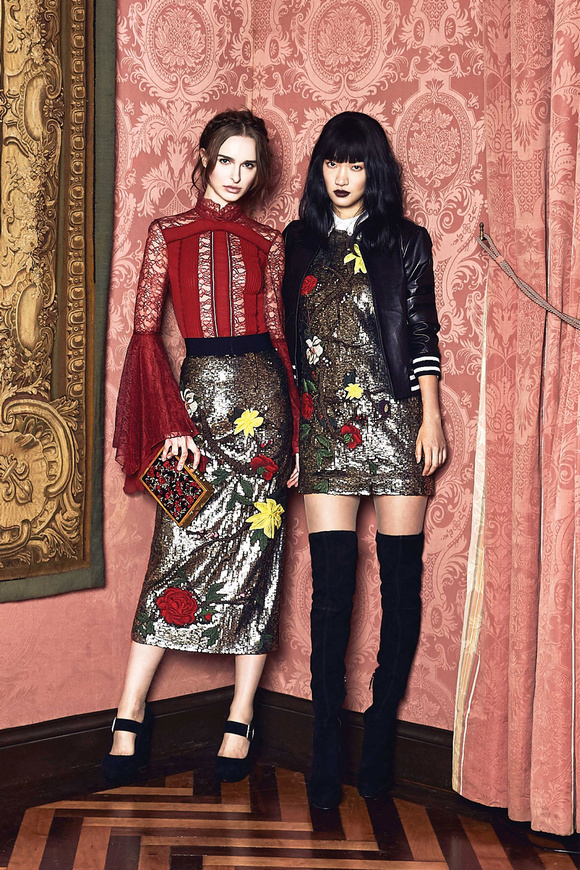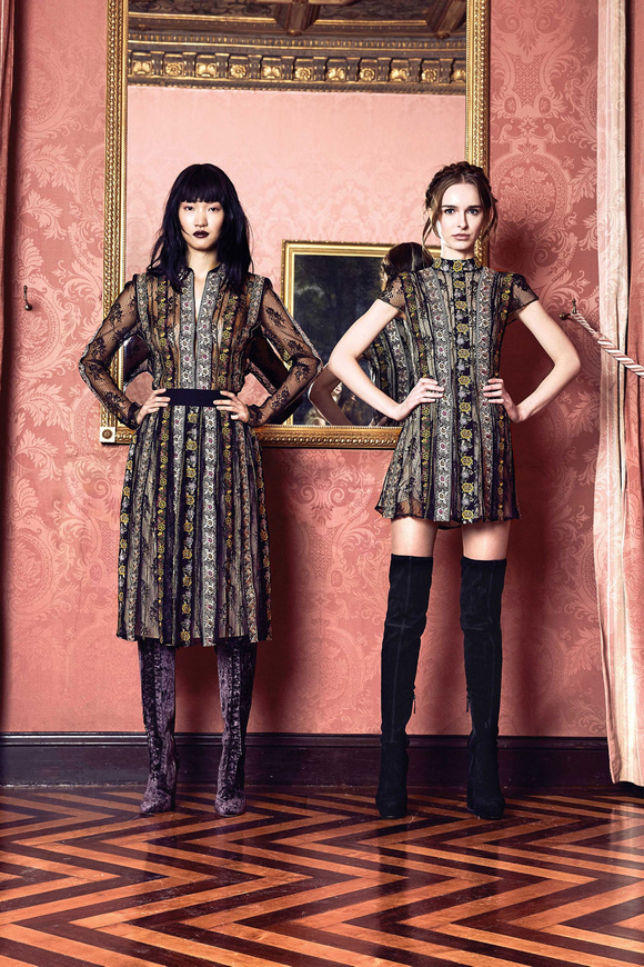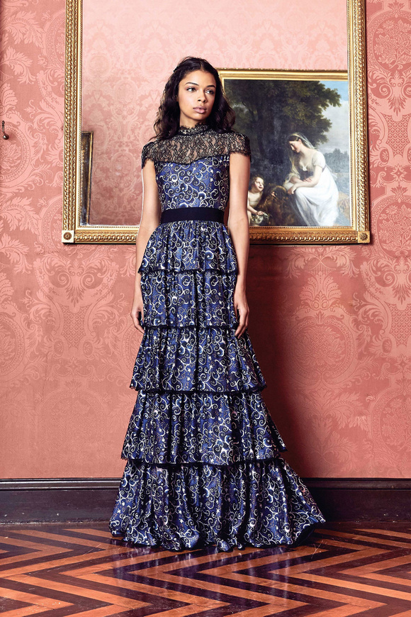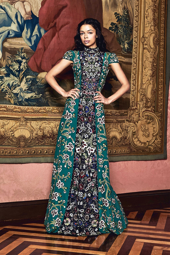 Alice Olivia 這一季的設(shè)計(jì)靈感,來源于她的設(shè)計(jì)師Stacey Bendet 收到的一份特殊的生日禮物,讓她這一季的設(shè)計(jì)充滿了印度皇室和意大利文藝復(fù)興的元素。關(guān)于這一季的作品,她還提出一句口號(hào):ldquo;改變你看到的世界rdquo;。