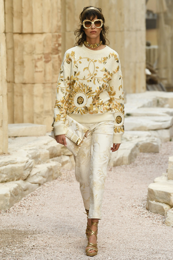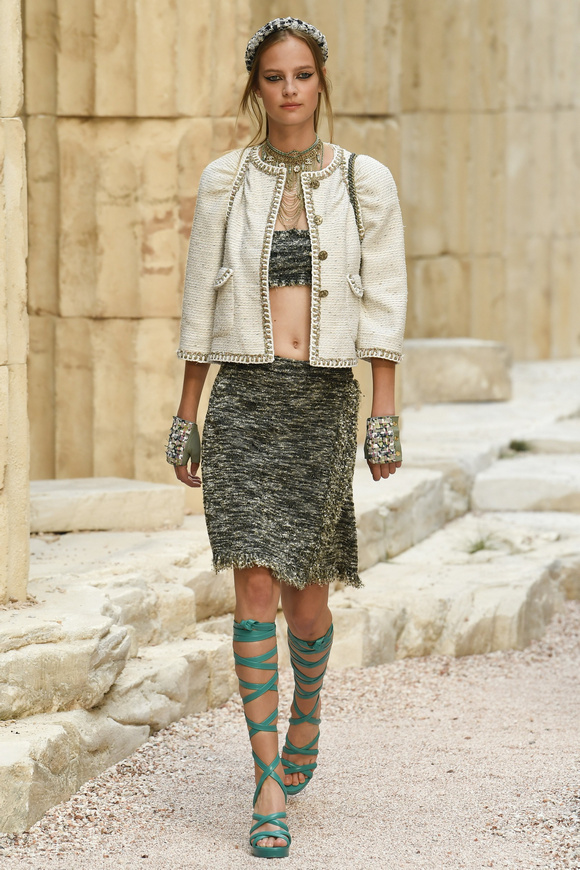 Chanel 香奈兒2018最新休閑時裝將我們帶到古希臘的凈土,在搖搖欲墜的柱子和斷裂的石板中開啟了時裝秀。這一季服裝的設(shè)計(jì)靈感,來源于希臘的關(guān)于畫廊的著名網(wǎng)站。時尚是一種周而復(fù)始的變化。