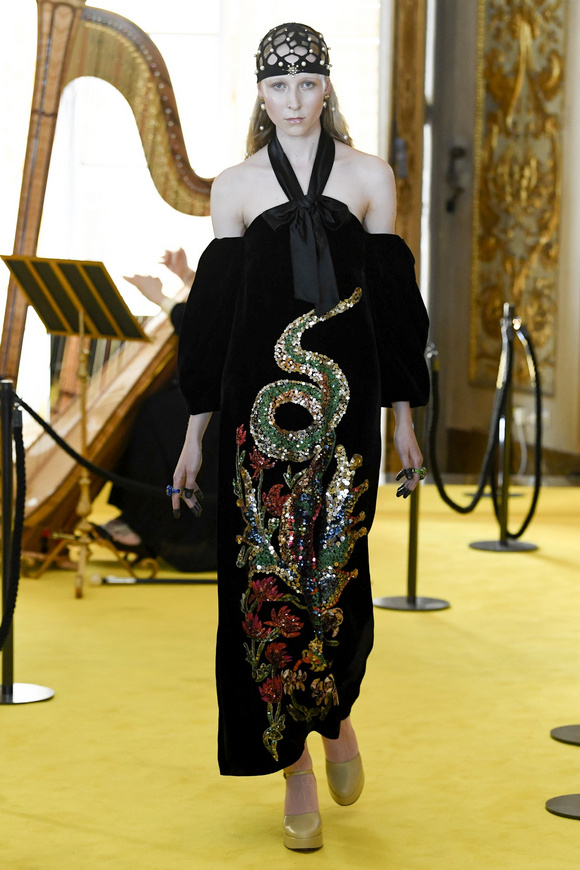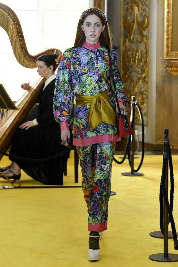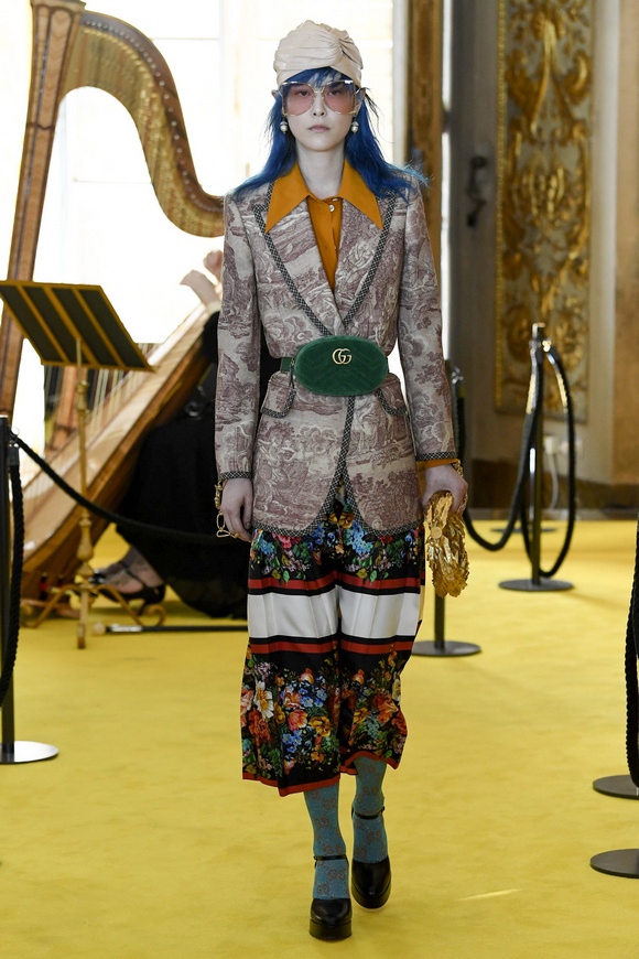 Gucci的首席設計師Alessandro Michele在游輪上舉辦這一季的時裝發(fā)布會。這個品牌開始的時候,都是從地中海、希臘和羅馬文化為設計靈感的。所以他這一季走上了文藝復興的下一大步,所以這一季時裝發(fā)布會的我們把場地布置成來到了這個迷人的大都市--過去的佛羅倫薩。