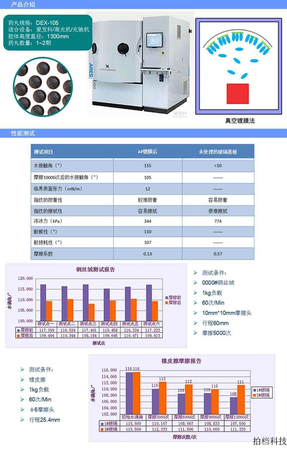 | 產(chǎn)品介紹: | 防指紋鍍膜顆粒是一種通過真空熱蒸發(fā)鍍膜實(shí)現(xiàn)產(chǎn)品防油污/防臟污性能的材料。它在真空受熱的情況下把吸附在載體里面的有效成分蒸發(fā)到玻璃或薄膜表面形成疏水疏油的納米級(jí)膜層,可以有效起到防指紋的效果。 |